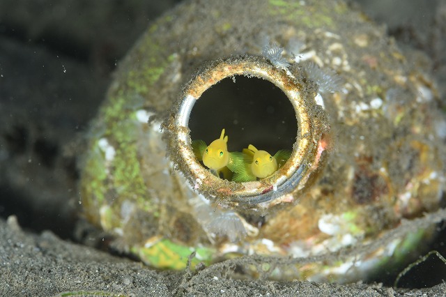 沖のお茶缶にいるミジンベニハゼ。