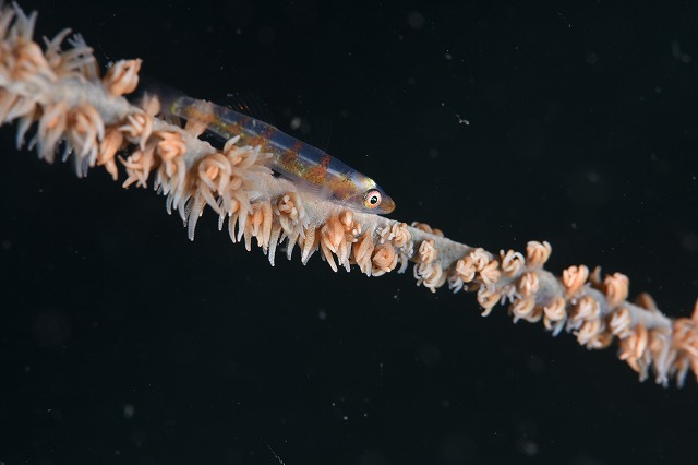 沈船近くのムチカラマツにガラスハゼを発見。