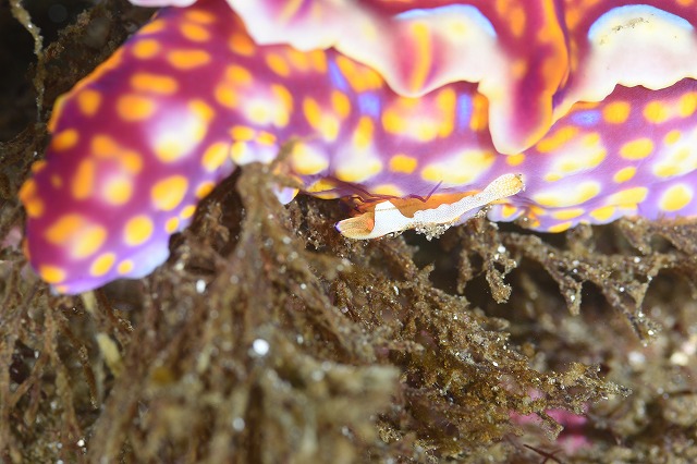 しっかりウミウシカクレエビも2匹、頭とお尻付近に隠れていました。