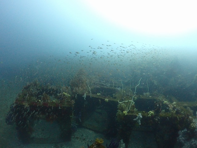 透視度は8~12mほどで、全体的に浮遊物が多く白っぽい濁りがあります。