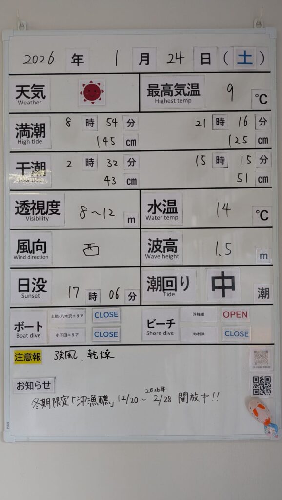 強い西風の影響で沖は大荒れのため、ボートはオールCLOSEといたします。