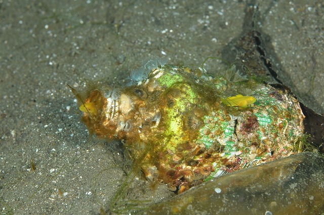 こんな風に粘液でピトっと海藻にくっ付くのが彼らのオリジナル技です。