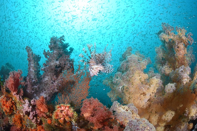 今朝まで荒れ狂った影響で水中は若干白っぽく霞んでいましたが、明るくストレスのないコンデションでした。