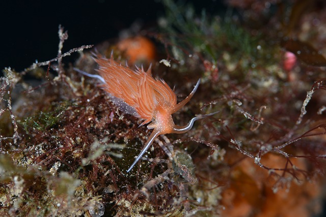 ロープ沿いを泳いでいたらアカエラミノウミウシに遭遇しました。