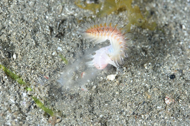 おそらくウミケムシ側が捕食しているのだと思いますが見た目は真逆。