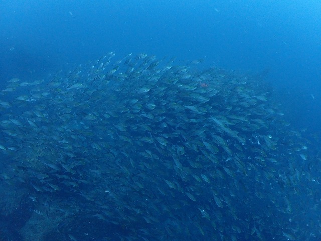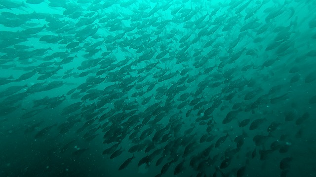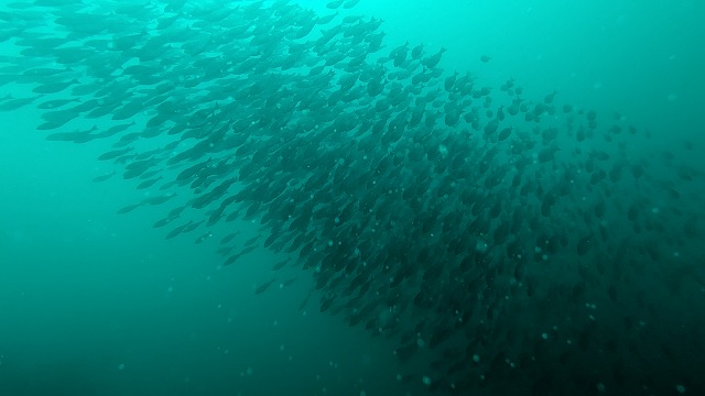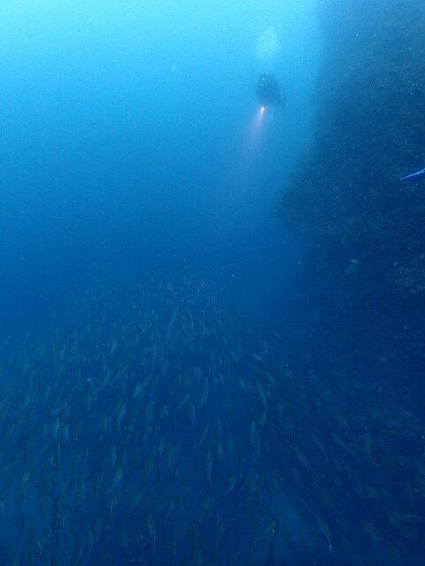 上がりたいけど進む先にはダイバーがいて先頭が失速するため、徐々に渋滞して群れが濃くなっていきます。